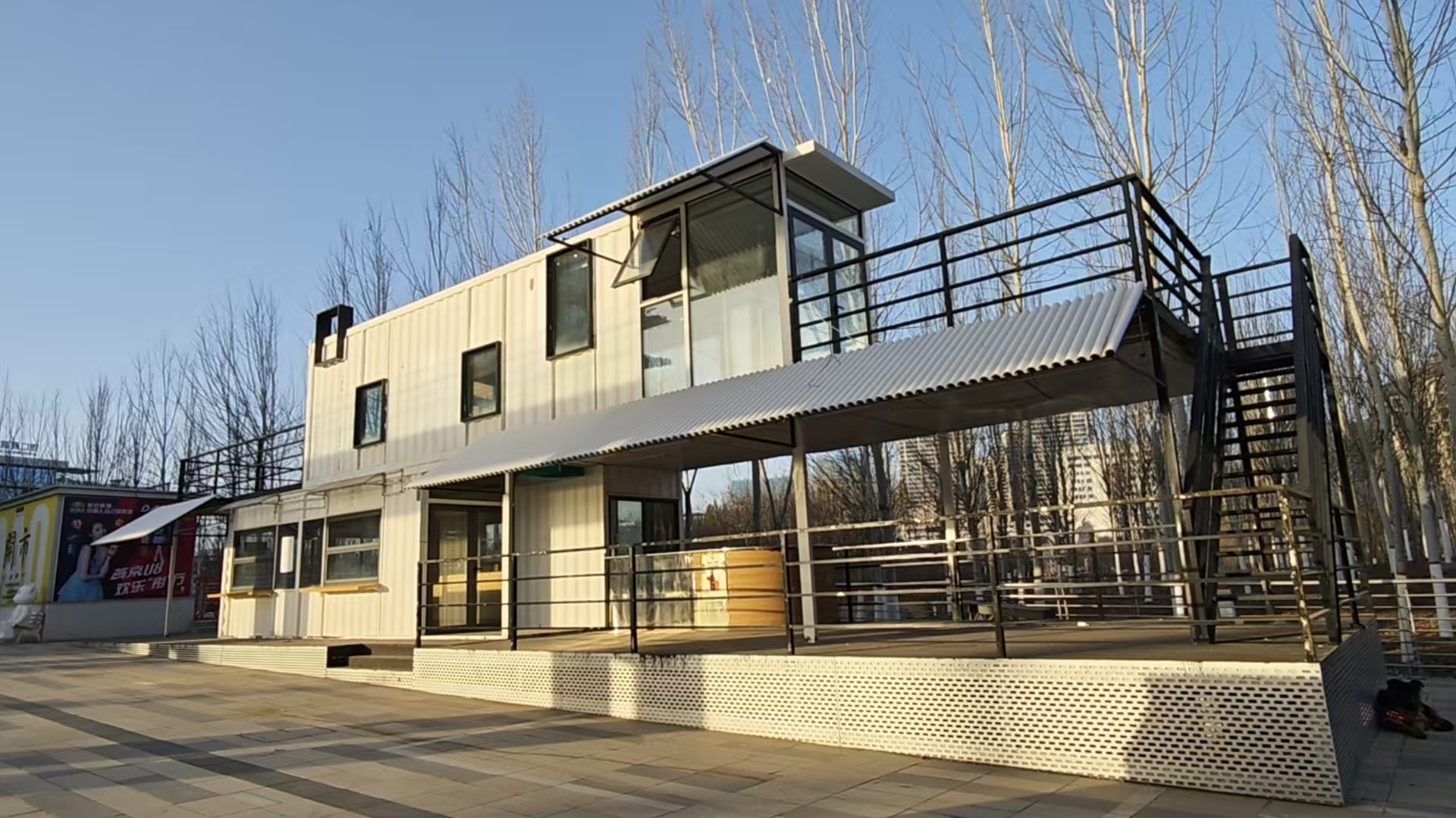 延安新城中環(huán)廣場“創(chuàng)意集裝箱網(wǎng)紅獨棟 ”,房子尺寸:長23.4米,寬4米,帶外走廊:寬是5.5米。